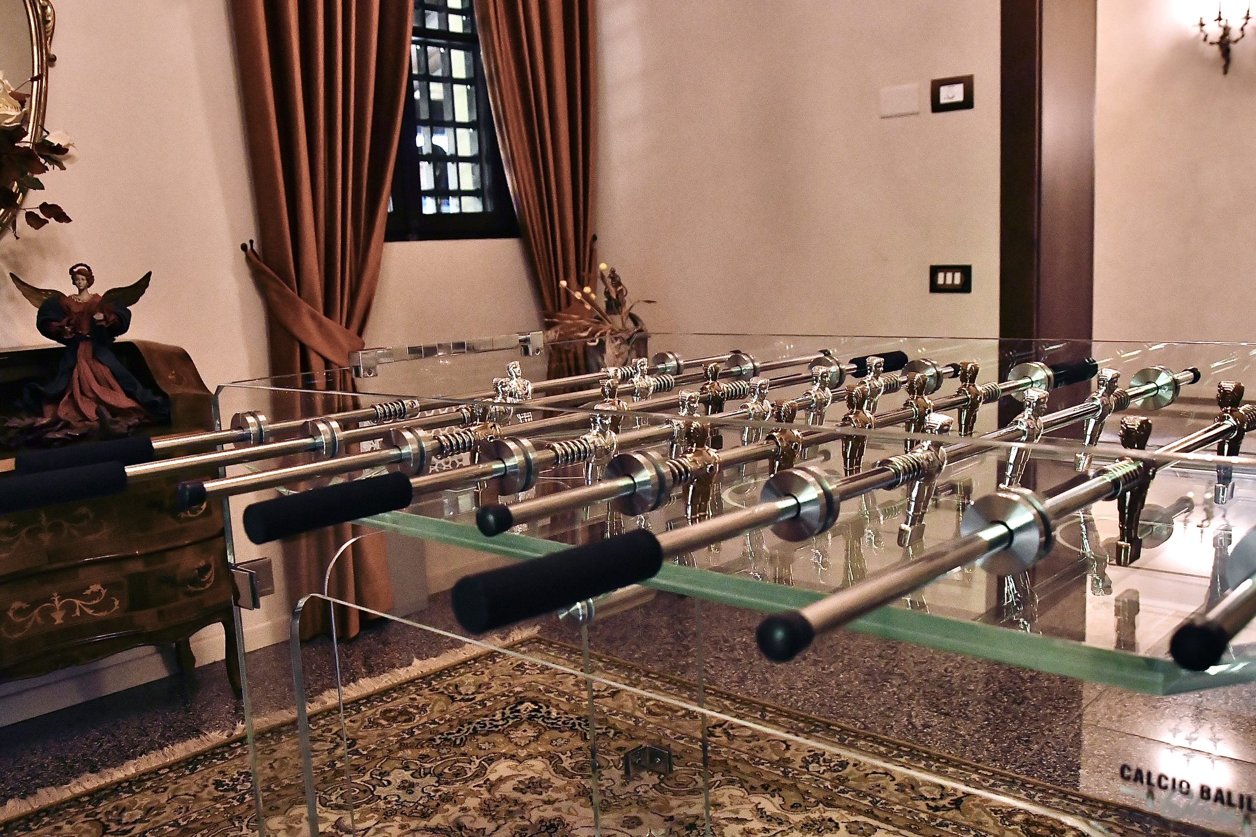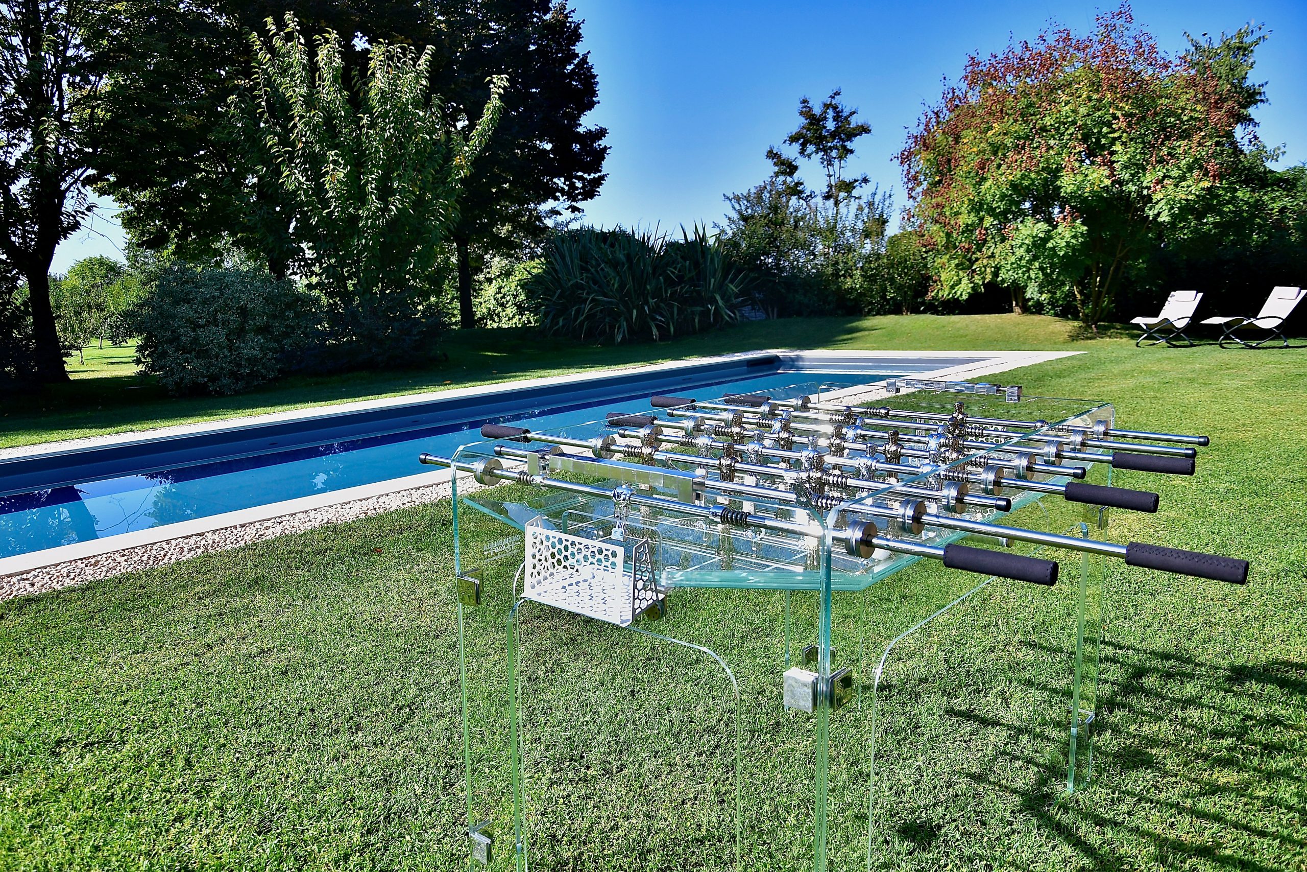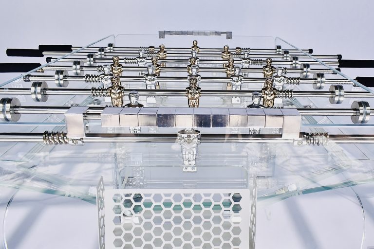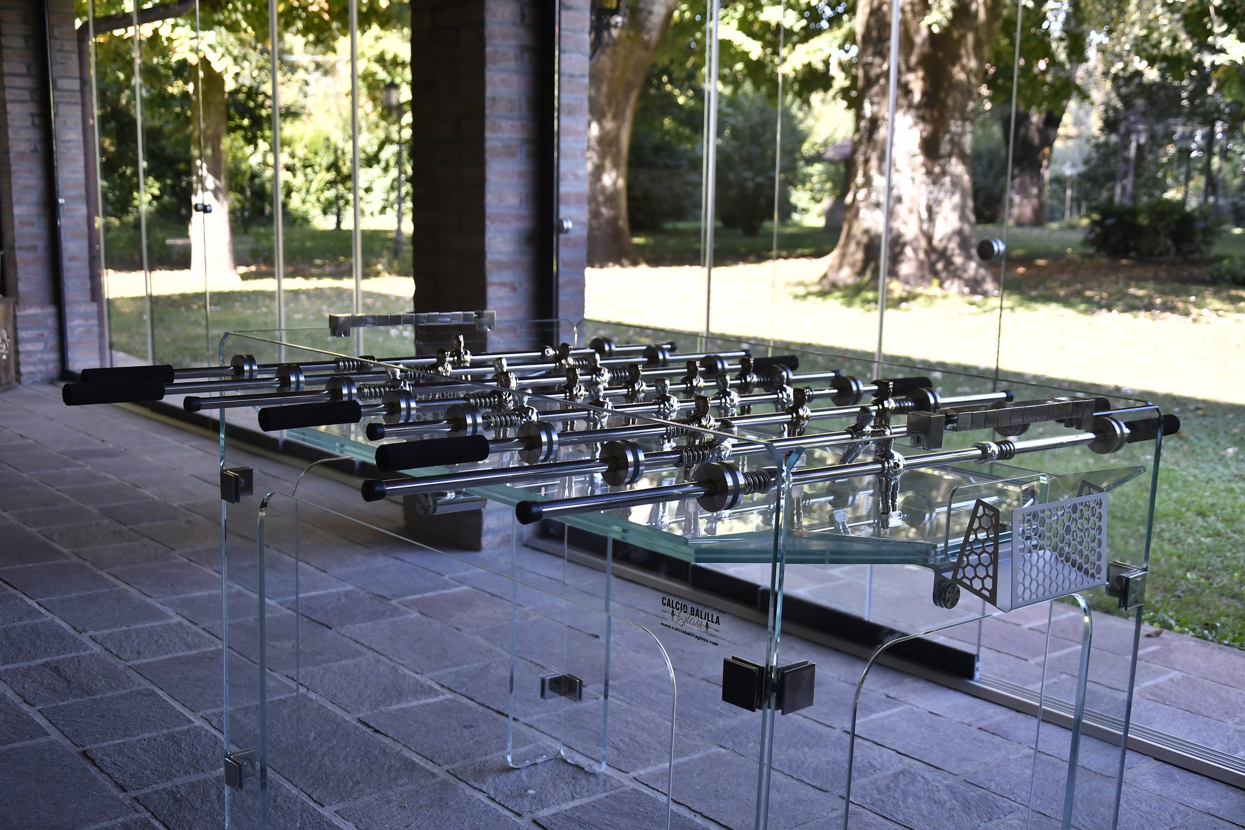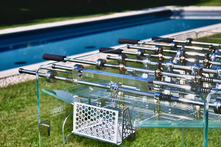 Biliardino in vetro, un oggetto di design pratico e divertente.